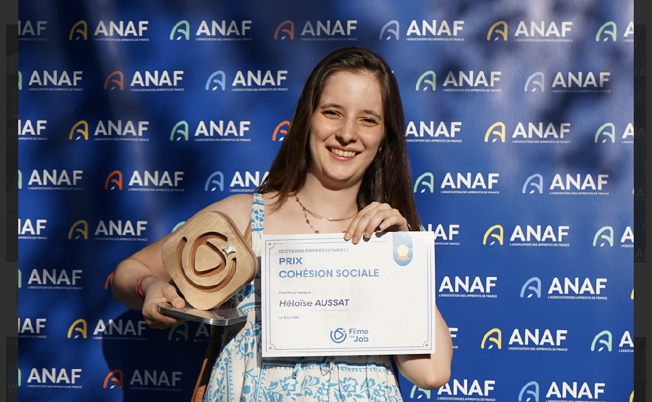 Héloïse témoigne de son expérience avec émotion : « Je suis très fière d’avoir obtenu de prix de la cohésion sociale. C’est un honneur de représenter les valeurs de mon métier et de l’alternance. Je suis aussi surprise d’avoir gagné ! Nous étions plus de 180 participants et toutes les vidéos méritaient de gagner. Encore bravo à tout le monde ! »